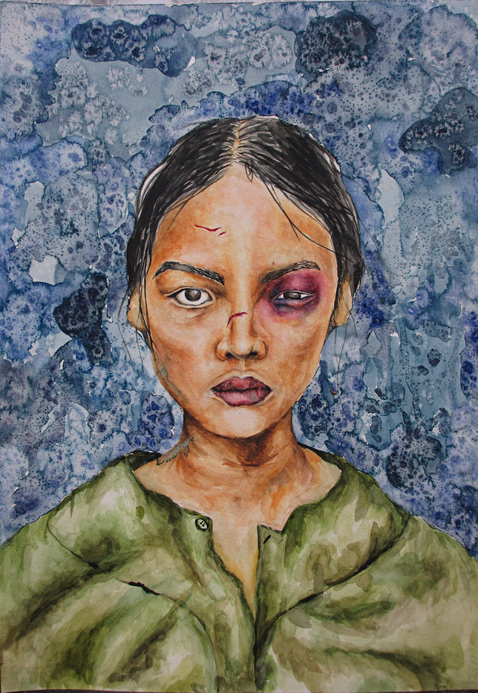 Injured Woman, 11.7' X 16.5', Watercolour, and salt, 2016
